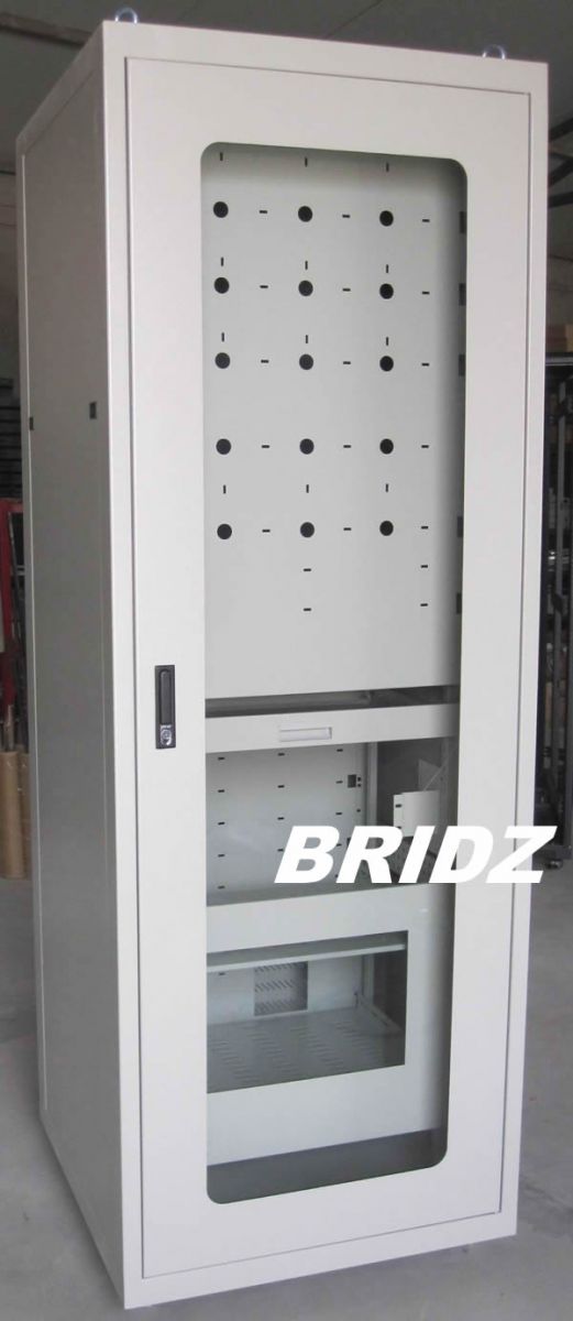 特点:电力行业专用机柜采用标准网络机柜的规格和架构,柜体外形尺寸的宽度扩大到800mm,使柜内设备舱更宽敞。机柜前门为内嵌式钢化玻璃主体门,后门为对开式冷轧钢门,柜顶安装有60mm屏眉,美观大方。内部可配置活动棉板及电器横梁布线方便。结构可选择各种横梁、立柱结构,完全模块化的理念,使用更为灵活便捷。根据实际应用需求的不同,可以制作适合在室内或室外安装使用的不同规格电力机柜,均可达到防护等级标准。