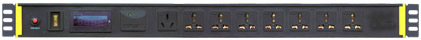 | 特殊设计 | 数显电流表(小,水平装用),8位美标插座。标准19吋机柜安装长度。 |